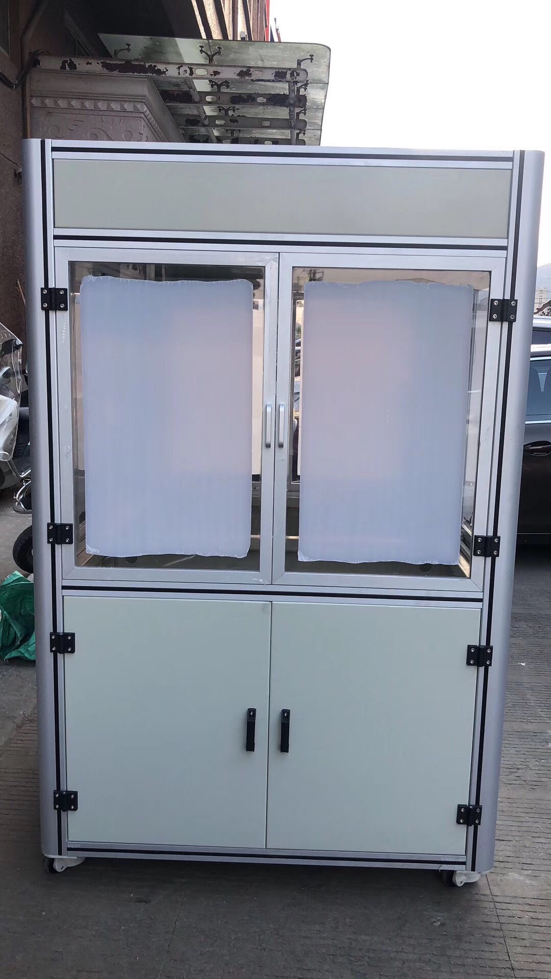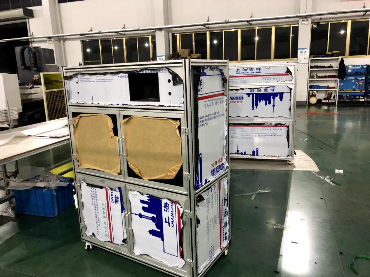 了解到王總我當時就問一下王總的機架的具體承重及尺寸,并且我們互相建立了微信技術小群1 1技術參與直接溝通方案設計。約在2天經過技術的1對1的技術服務,我們雙方把方案敲定了。因為時間的關系,我們第一次試制了5臺。自動化設備用鋁型材框架+鈑金做門。并與7月30號順利交期。王總他們收到貨后經過性能測試,鋁型材框架在承載力和重量及生產效量能都遠遠大于原來鈑金焊接機架。王總為此非常開心。