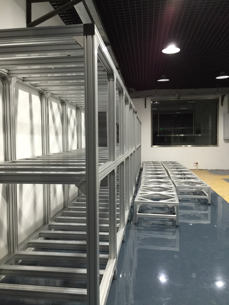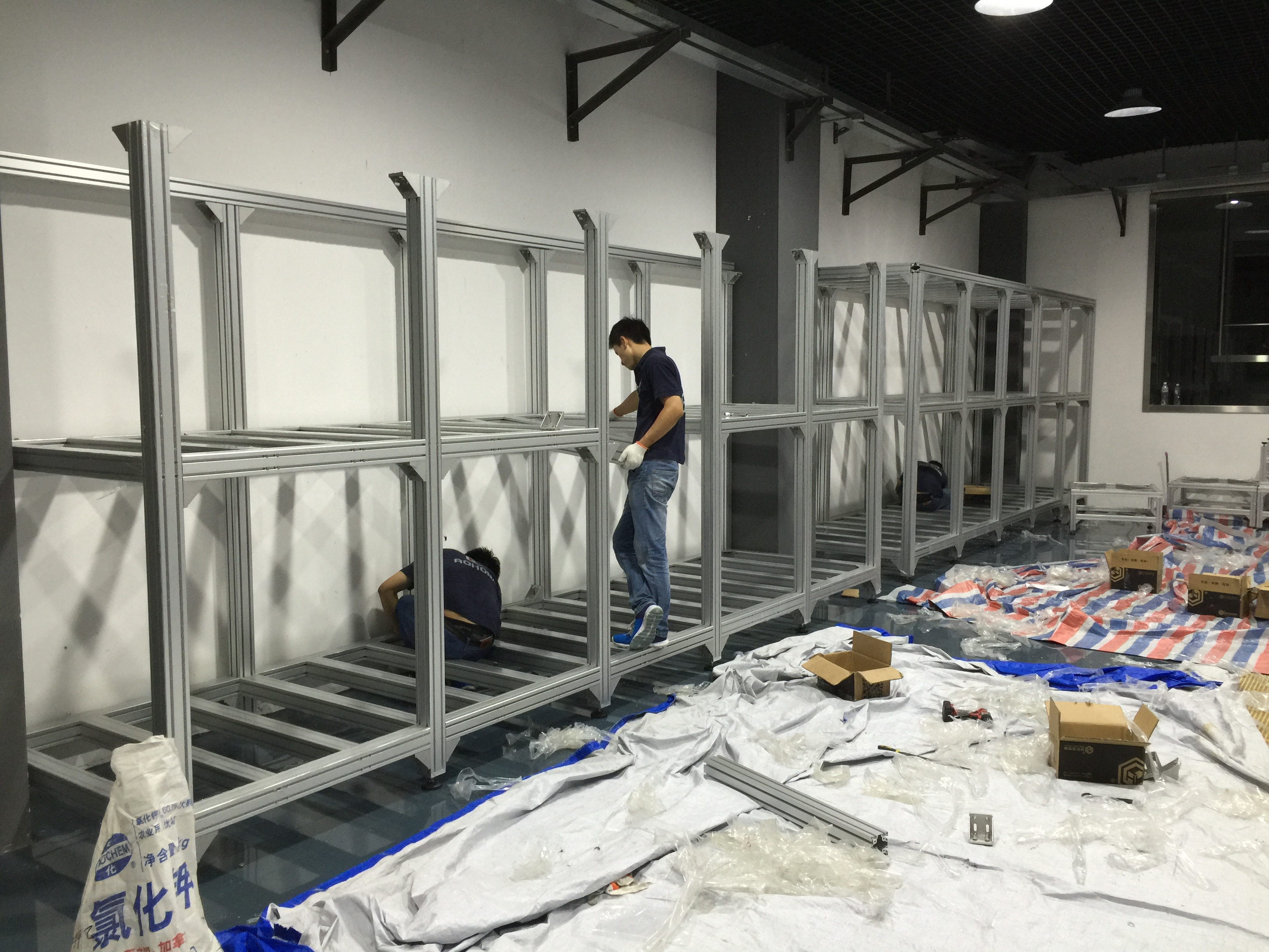 了解朱經(jīng)理的項(xiàng)目需求后,我們立刻對朱經(jīng)理項(xiàng)目進(jìn)行設(shè)計(jì),朱經(jīng)理的項(xiàng)目施工在崇明中華鱘夢園,約有200平方的占面積,每個定制鋁型材框架,3米,長15米的,承載力要達(dá)10噸,我們整個鋁框架的方案全部采用歐標(biāo)80120鋁型材做立柱,8080鋁型材做橫梁,結(jié)構(gòu)連接采用12.9級高強(qiáng)度不銹鋼螺栓+打孔連接,并外面用直角件加固連接保確承重安全及結(jié)構(gòu)穩(wěn)定。工藝,是加工好后,現(xiàn)場施工。自方案設(shè)計(jì)到生產(chǎn)總15天,并在5天內(nèi)完成上門施工。